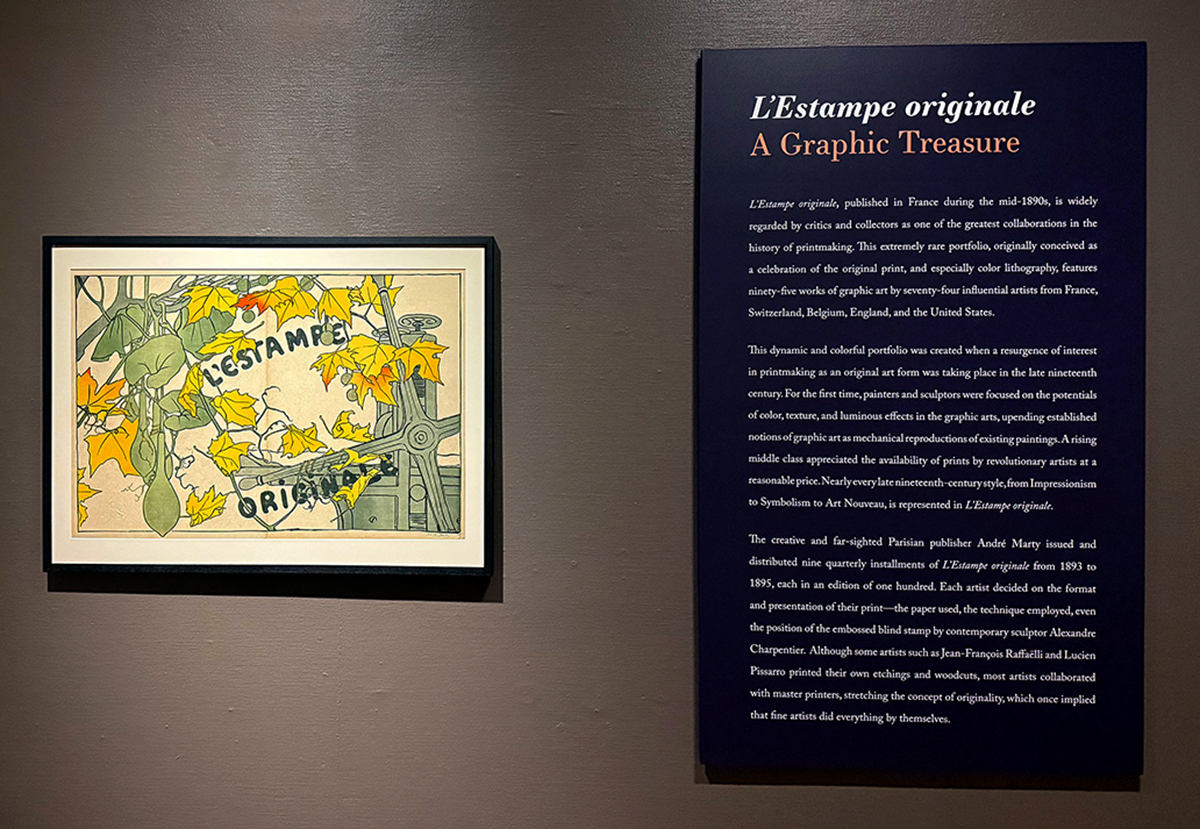 This dynamic and colorful portfolio was created when a resurgence of interest in printmaking as an original art form was taking place in the late nineteenth century. For the first time, painters and sculptors focused on the potentials of color, texture, and luminous effects in the graphic arts. Nearly every late nineteenth-century style, from Impressionism to Symbolism to Art Nouveau, is represented in the L’Estampe originale portfolio. A rising middle class appreciated the availability of prints by revolutionary artists at a reasonable price.